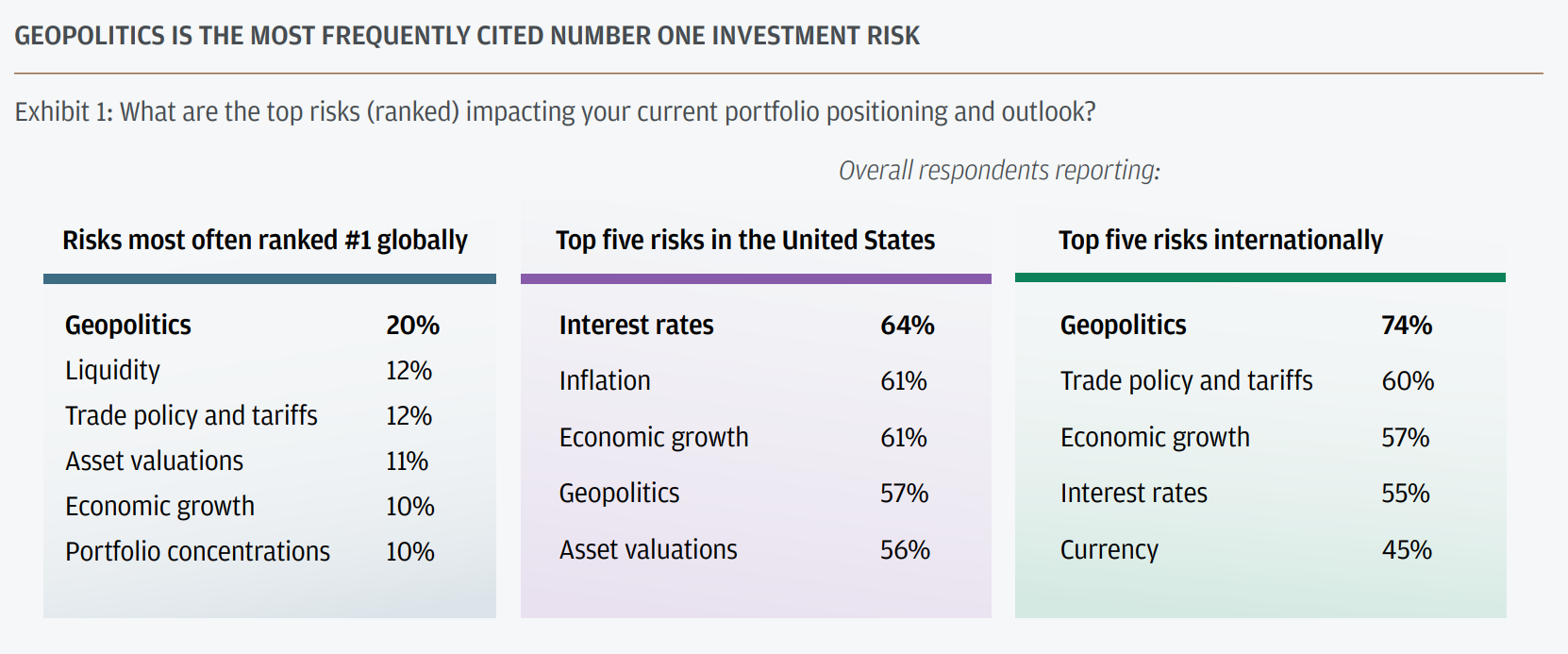 Top risks impacting portfolio positioning among family offices. Source: JPMorgan