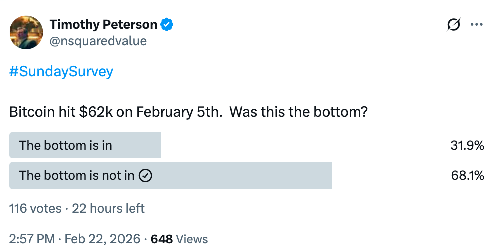 A survey conducted by Peterson on Sunday, meanwhile, underscored existing bearish crypto market sentiment.