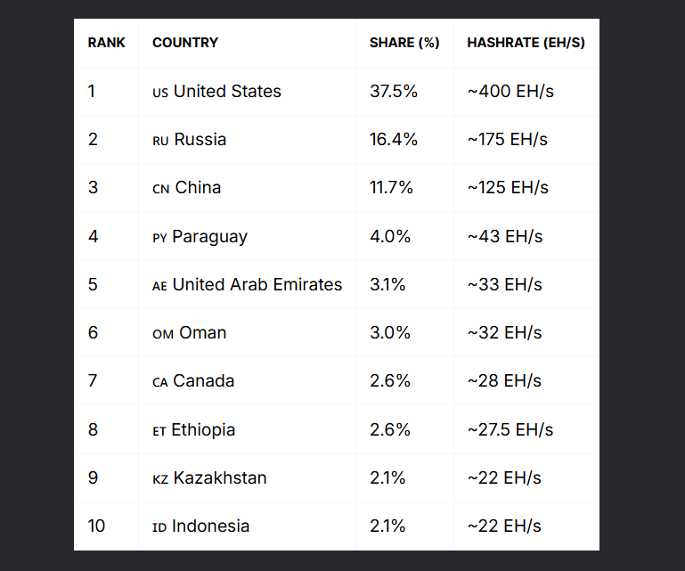Despite the ban, China is still cited as the third-largest Bitcoin (BTC) mining country. In January 2026, it accounted for 11.7% of the global hashrate, according to data from Compass Mining.