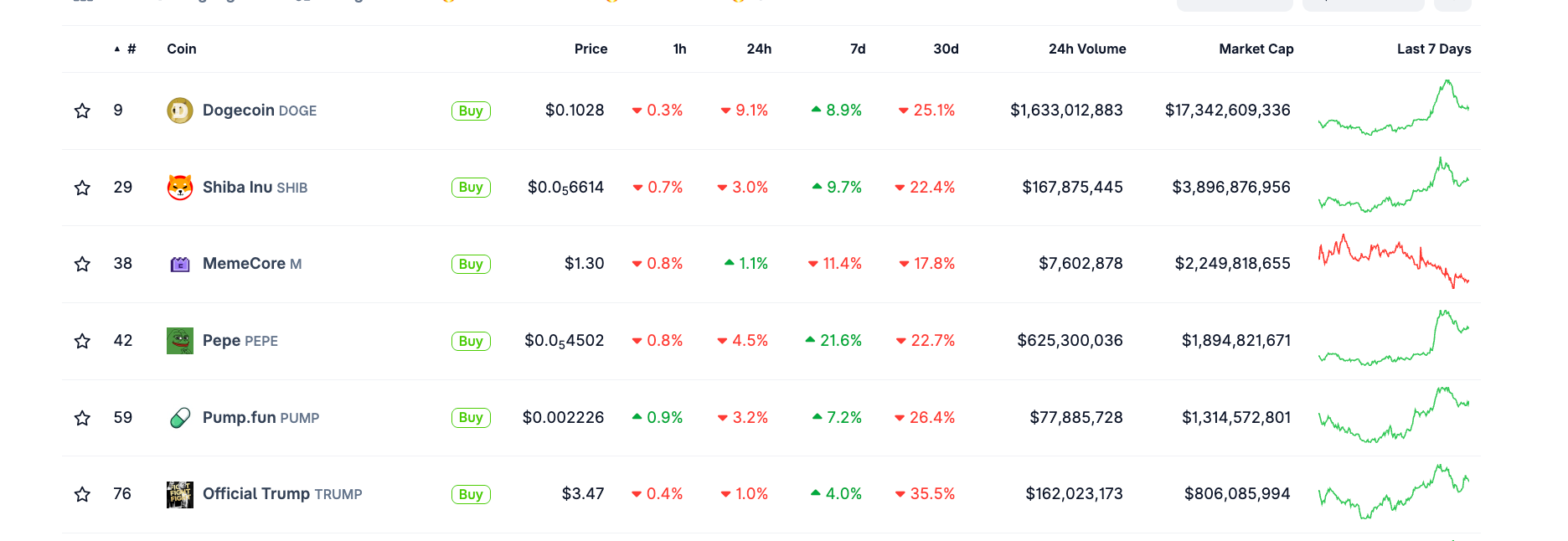 The broader meme coin market continues to mirror Dogecoin’s movement.