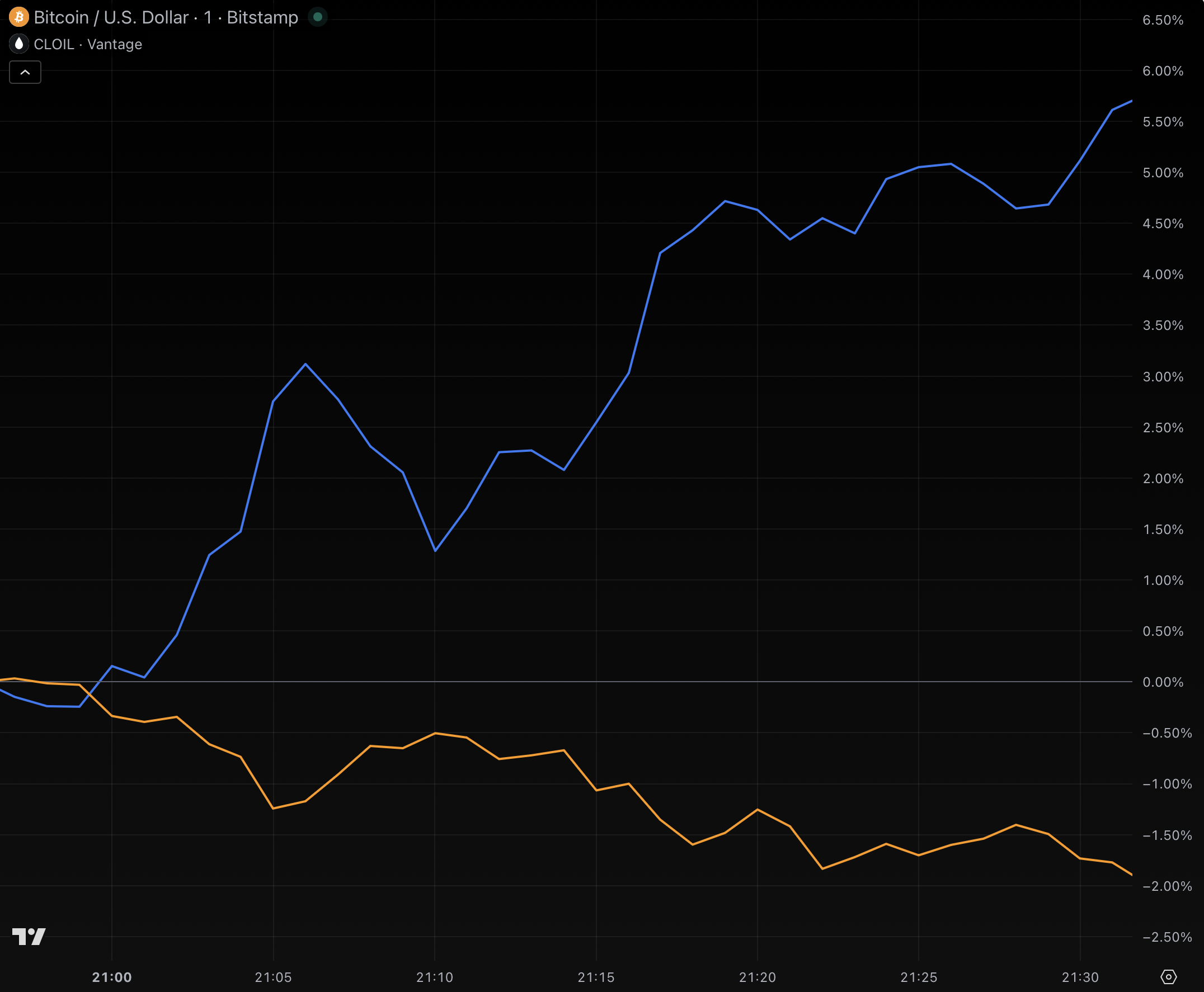 As of publication time, both oil and bitcoin have extended their moves since Trump’s speech. Oil is now 13% more expensive than when Trump began speaking last night. The price of BTC is 3.1% worse over the same time period.