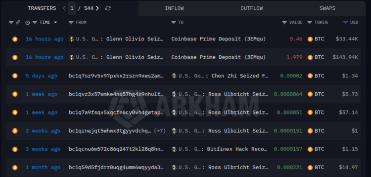 US Government Transfers 2.4 BTC Worth $177K to Coinbase – BitRss